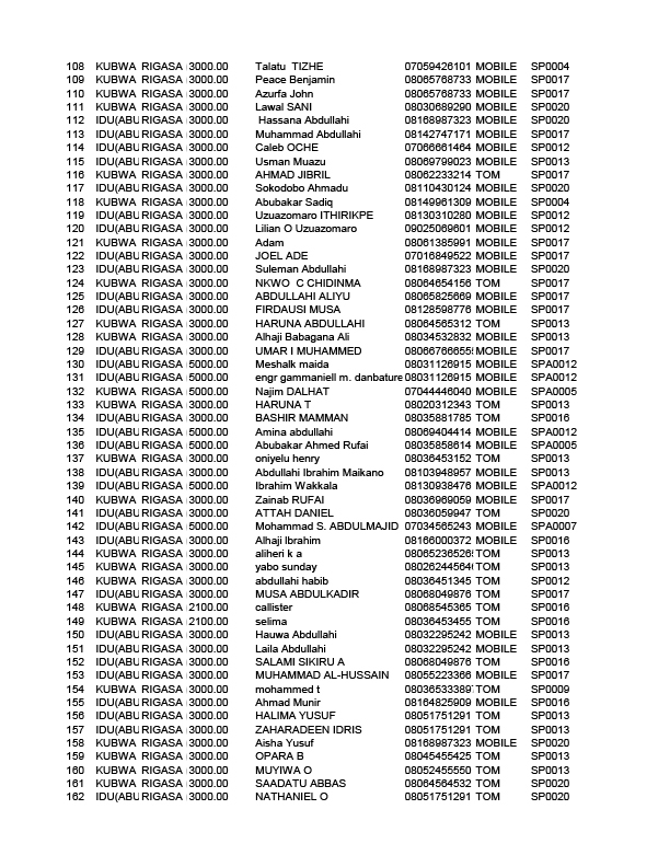The Kaduna State Government has released the passenger manifest for the Abuja-Kaduna train service AK9 which was attacked by bandits on Monday.