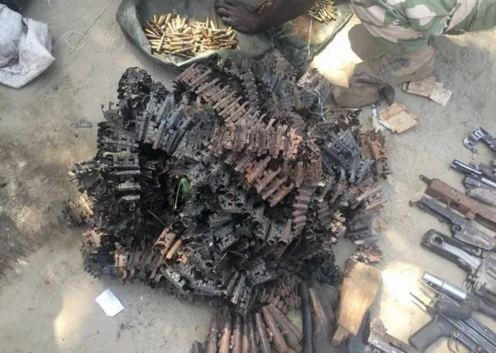 The troops also recovered 55 Rounds of 5.56 X 45mm ammunition, 5 Bangalore Torpedo, Two 120mm Mortar Bombs, 1000 Rounds of 7.62mm Ball Metal Link Ammunition, 55 Rounds of 7.62mm Ammunition and 108 Rounds of 12.7mm Ammunition with links, as well as 2 memory cards, 2 Hydraulic Jacks and a 1.5 Amp Battery.